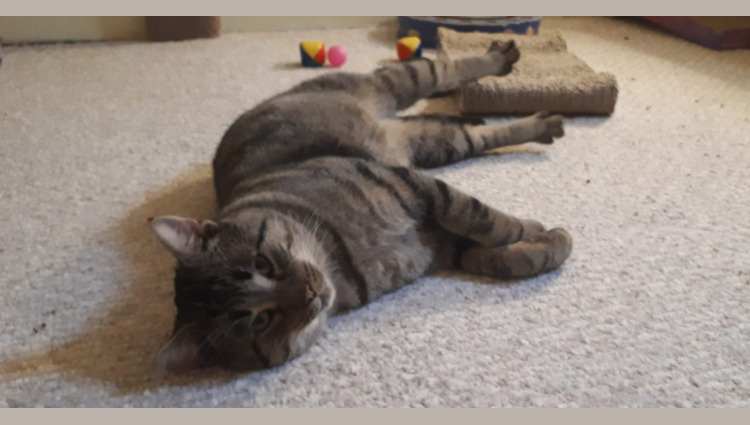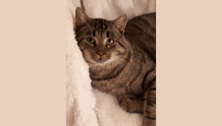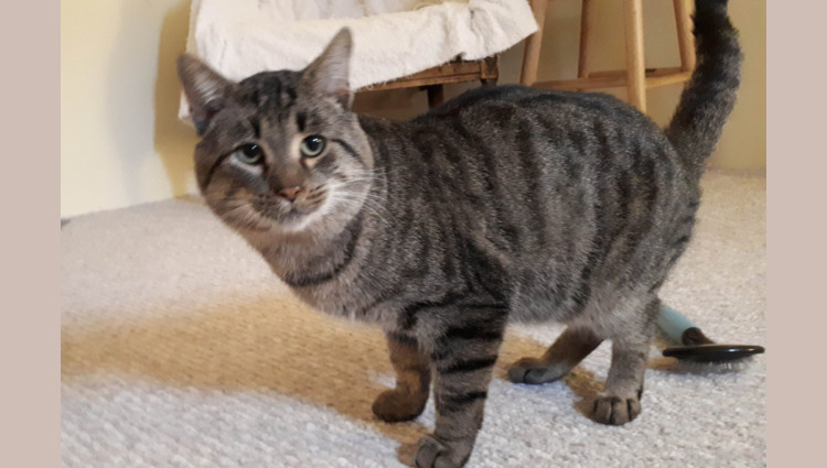 a fine name for a big stripey boy cat. He had been coming around for more than a couple of weeks, and he really was very friendly. So friendly that mom Jennifer knew that he must be someone’s.